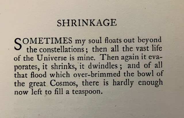 Among the new collections I’ve enjoyed and admired of late are Lady by Laurie Bolger (Nine Arches), In the Lily Room by Erica Hesketh (also Nine Arches), Lives of the Female Poets by Clare Pollard (Bloodaxe), and, at the moment, I Do Know Some Things by Richard Siken (Copper Canyon). The latter consists of single-paragraph prose-poems. In their quirkiness, they remind me of the epigrammatical mini-essays by Logan Pearsall Smith (1865–1946), which were really proto-prose-poems, I think. Here’s an example from his collection, More Trivia (1922), which I bought just before Christmas: