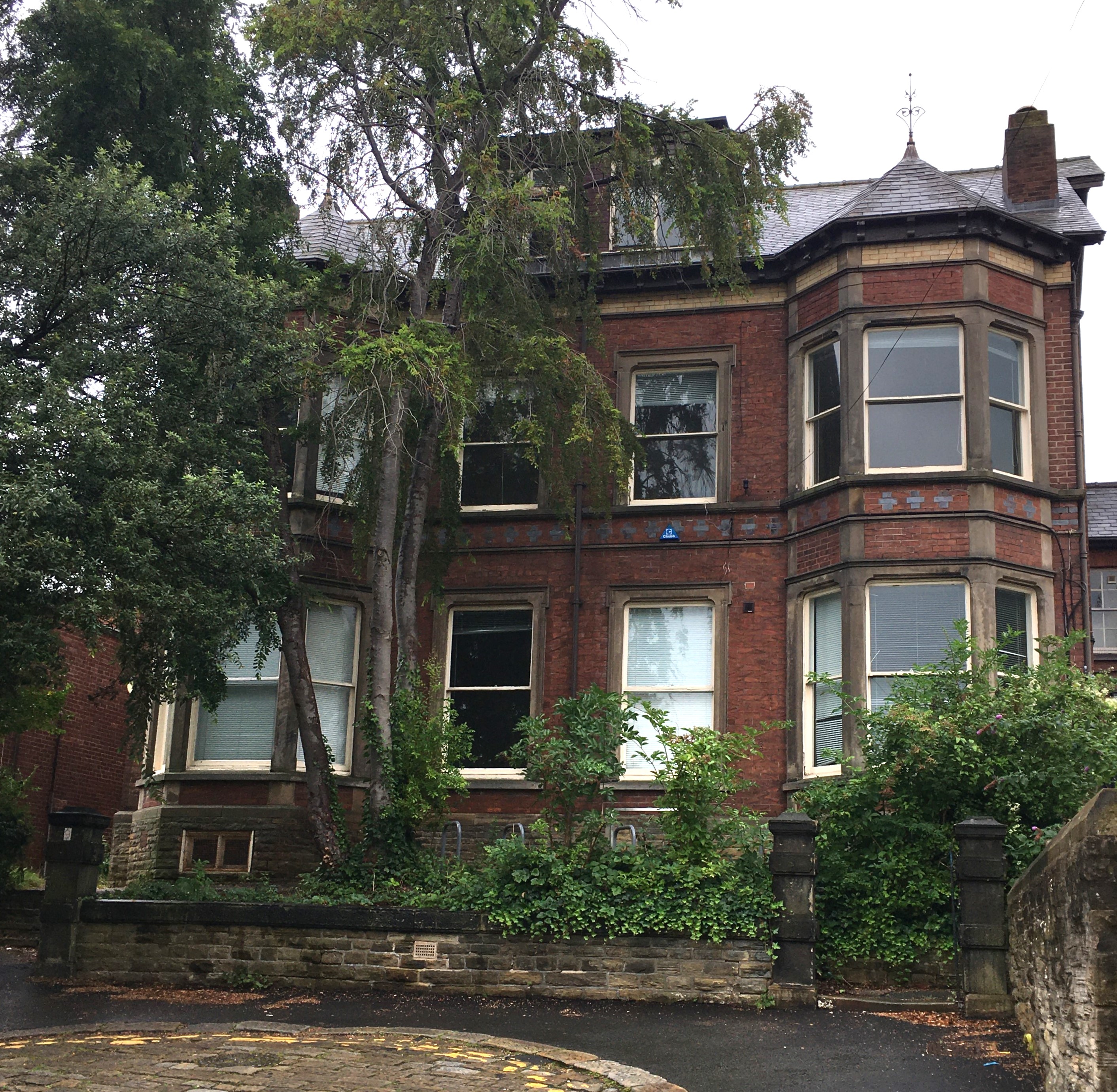 The fine detail, and spaced alliteration, of the third line flows beautifully from the second into the fourth, where we find more rich detail. ‘Woodlea’ could be the name of a house, perhaps built in the mid- to late-1800s, a Victorian villa in estate-agent parlance; or it could be the name of a block of flats; either way, it was a home, located, it seems, in south-west Manchester. (I’m no expert on the geography of Manchester!)