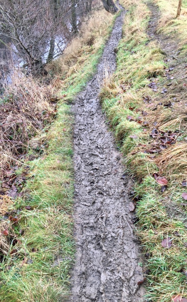 I’ve lice in my tunic and a cold in my nose.I didn’t go up Win Hill though, for two reasons: firstly, its summit, Win Hill Pike, was wrapped in low cloud; and secondly, my eye was drawn to a path which led from the road-bridge at Brough along the Noe to where it rushes in to the Derwent at the delightfully-named Shatton; and then by the path which followed the south bank of the Derwent to just south of Hathersage. On paper it looked an easy walk, and for two miles or so it was, until the path got muddier and muddier and so squelchy and slippery that my pace was considerably slower than the river’s.